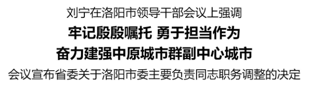 刘宁在讲话中指出,这次洛阳市委主要负责同志调整,是党中央和省委根据工作需要和洛阳领导班子建设实际通盘考虑、慎重研究决定的。
